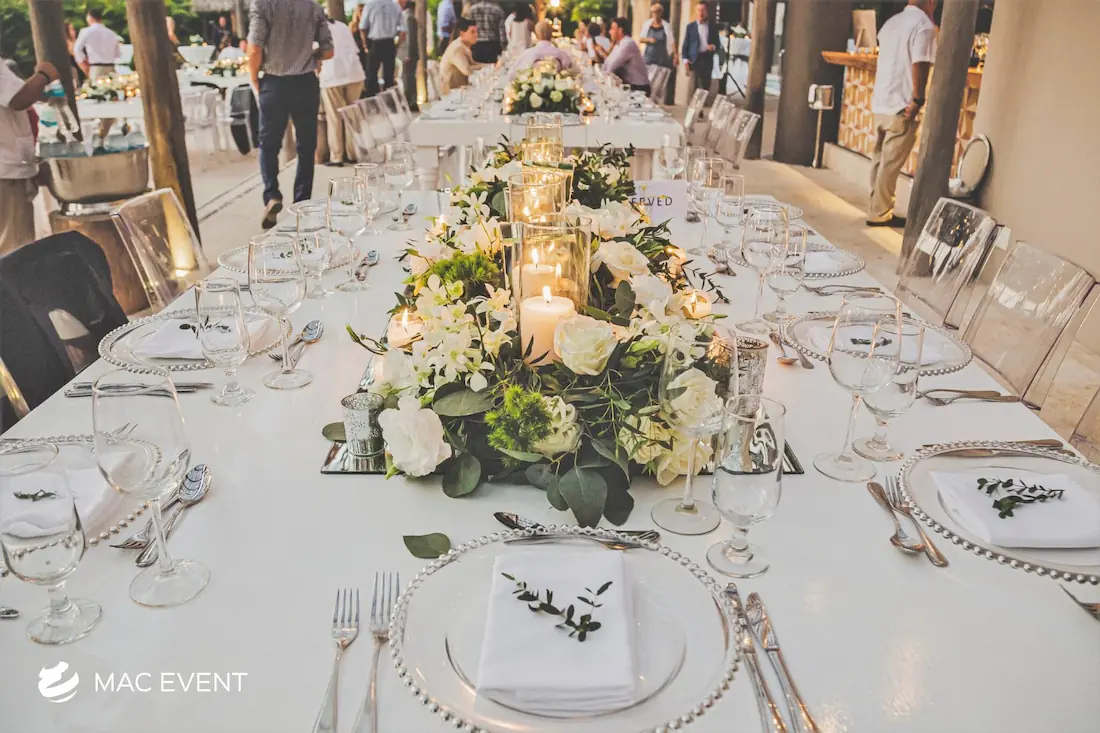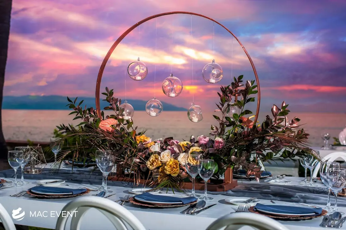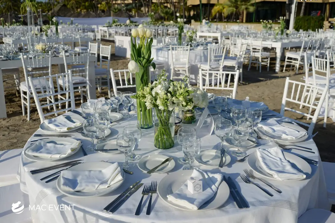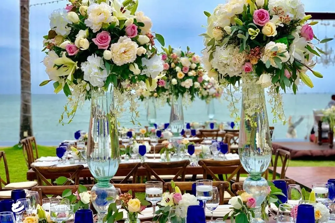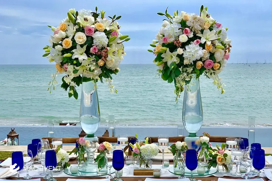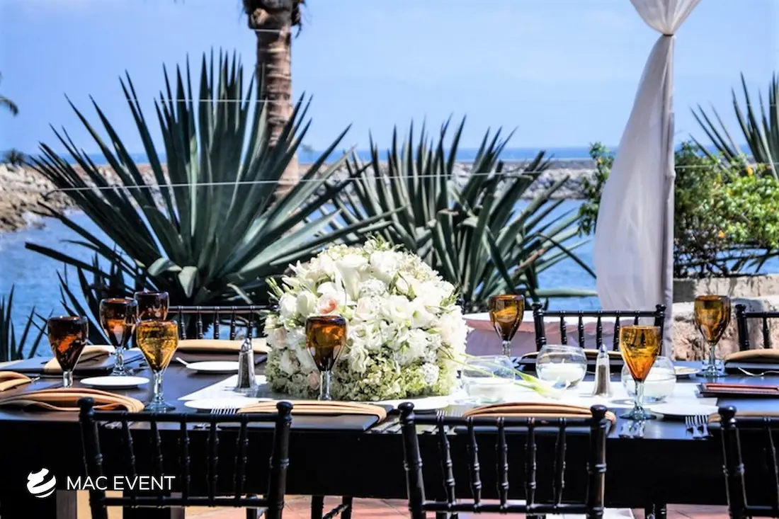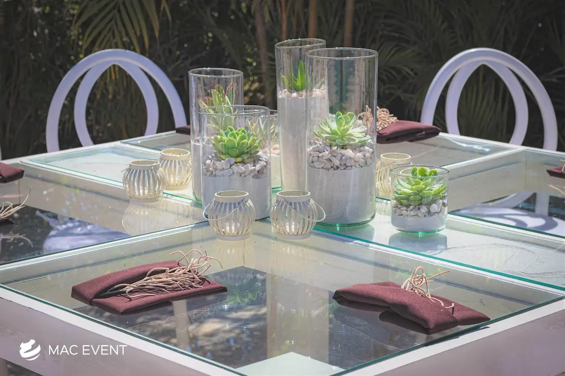 The banquet table centerpiece adds elegance and harmony to long table setups at weddings, parties, and corporate events in Puerto Escondido. Designed to complement extended dining arrangements, this event décor rental enhances the flow and visual balance of your space. Whether styled with lush greenery, candles, or floral arrangements, the banquet table centerpiece creates a warm and sophisticated atmosphere that encourages conversation and connection. Renting banquet table centerpieces in Puerto Escondido ensures a coordinated and polished presentation that perfectly matches your event theme. For a refined and inviting dining experience, this centerpiece is an ideal finishing touch.