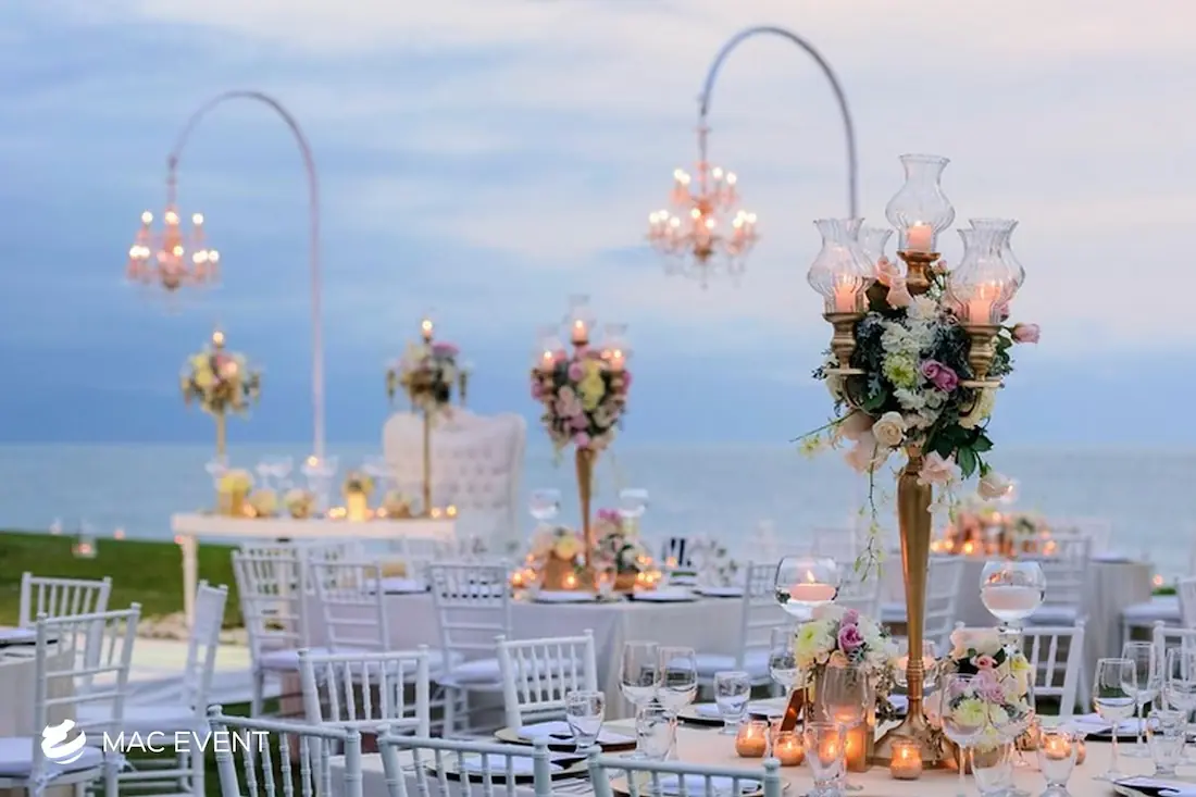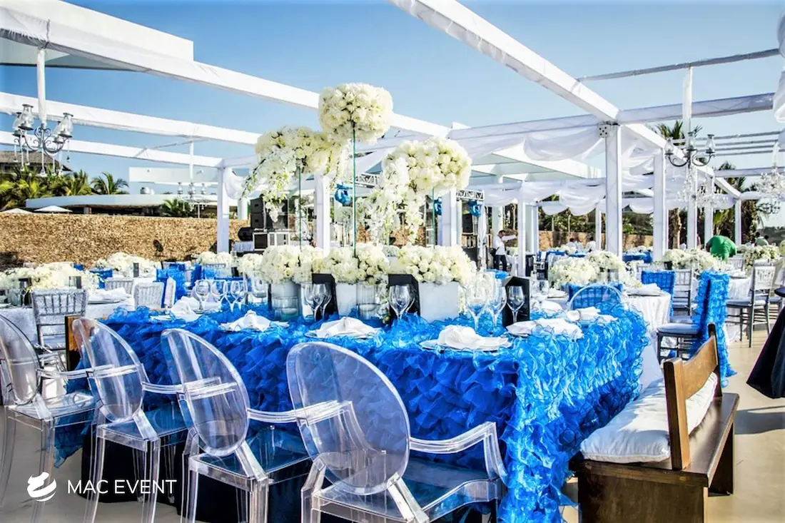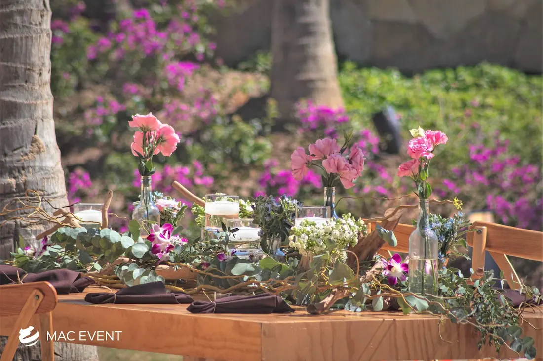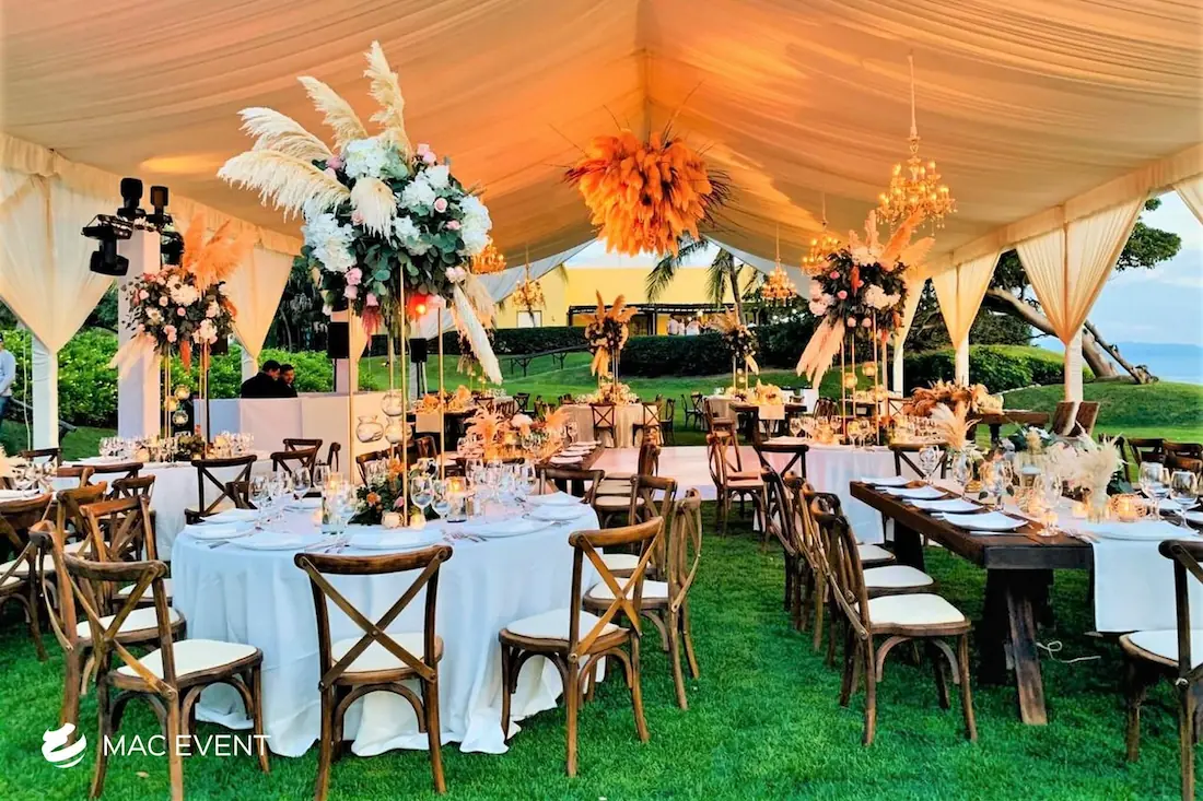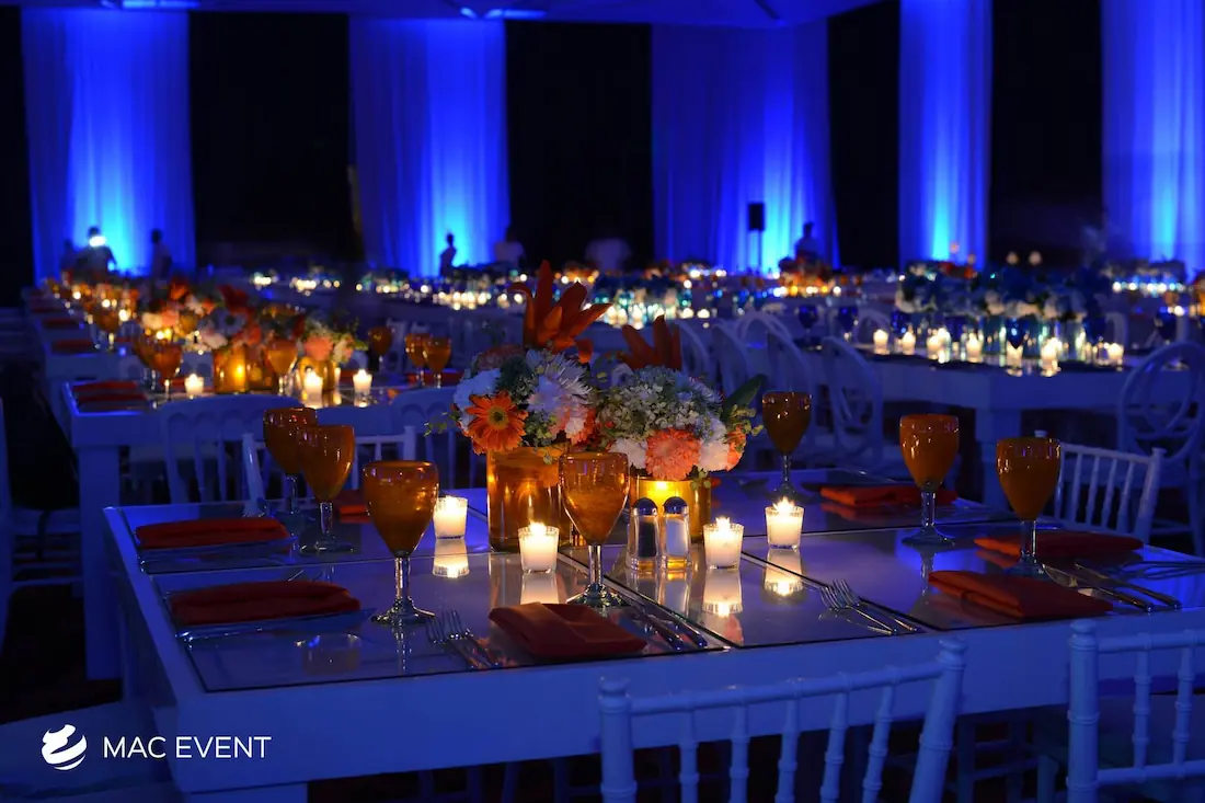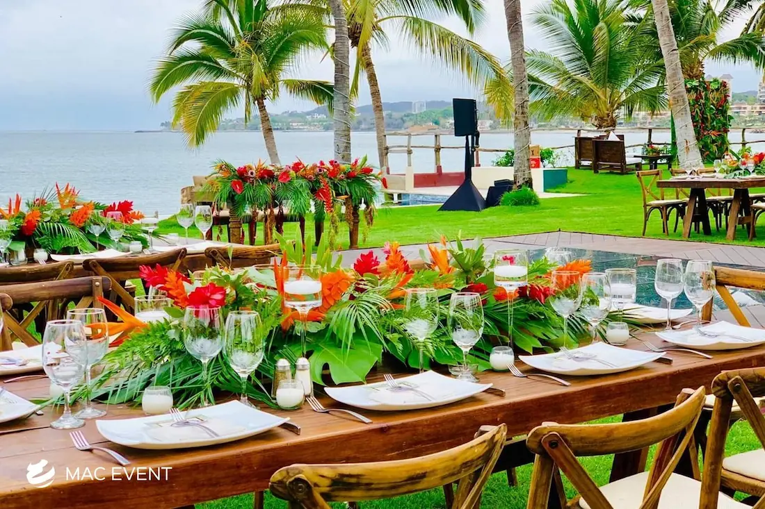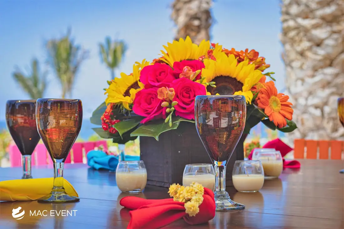 The banquet table centerpiece adds elegance and harmony to long table setups at weddings, parties, and corporate events in Puerto Escondido. Designed to complement extended dining arrangements, this event décor rental enhances the flow and visual balance of your space. Whether styled with lush greenery, candles, or floral arrangements, the banquet table centerpiece creates a warm and sophisticated atmosphere that encourages conversation and connection. Renting banquet table centerpieces in Puerto Escondido ensures a coordinated and polished presentation that perfectly matches your event theme. For a refined and inviting dining experience, this centerpiece is an ideal finishing touch.