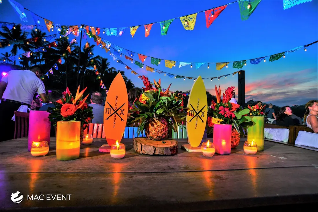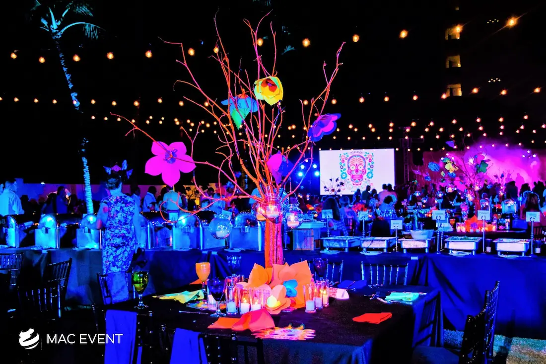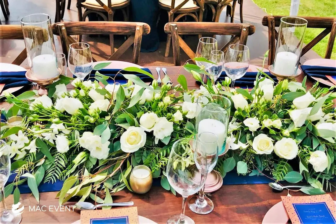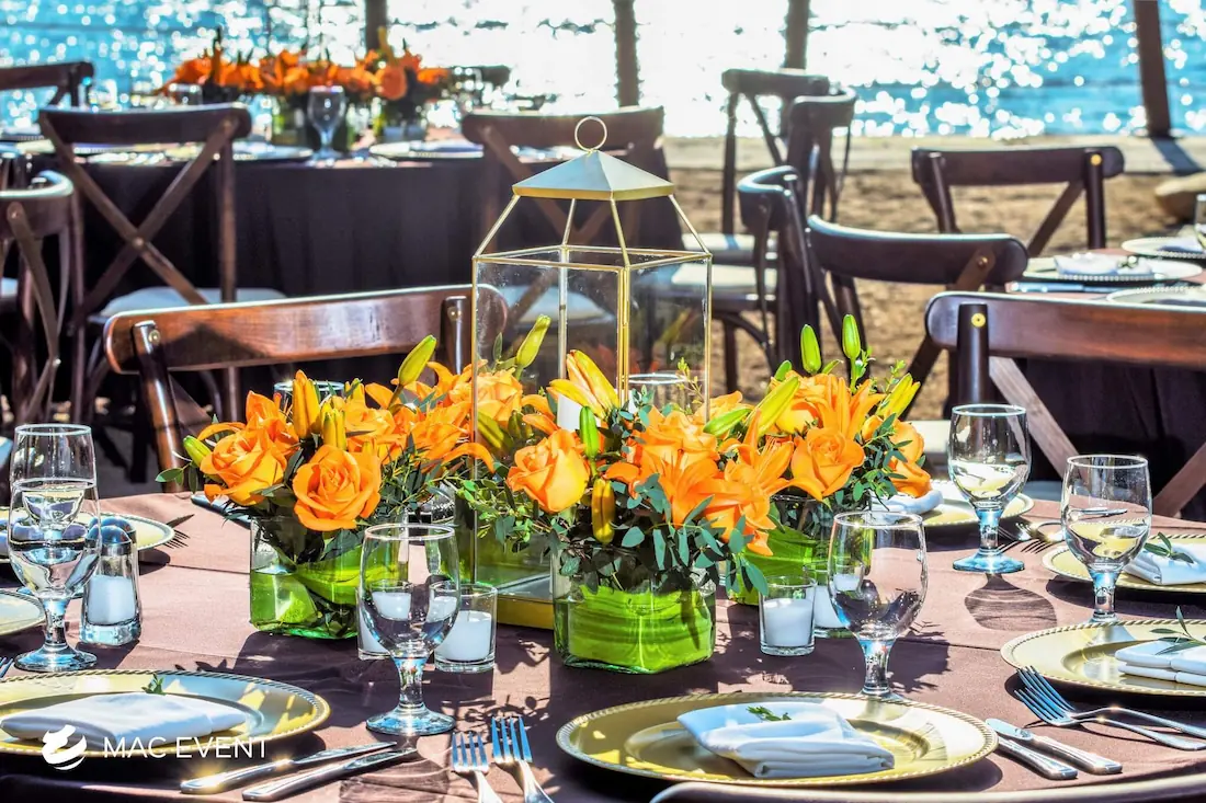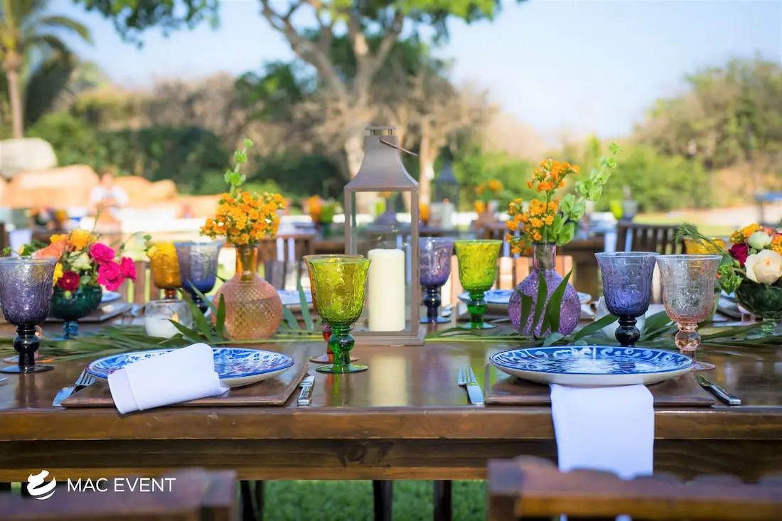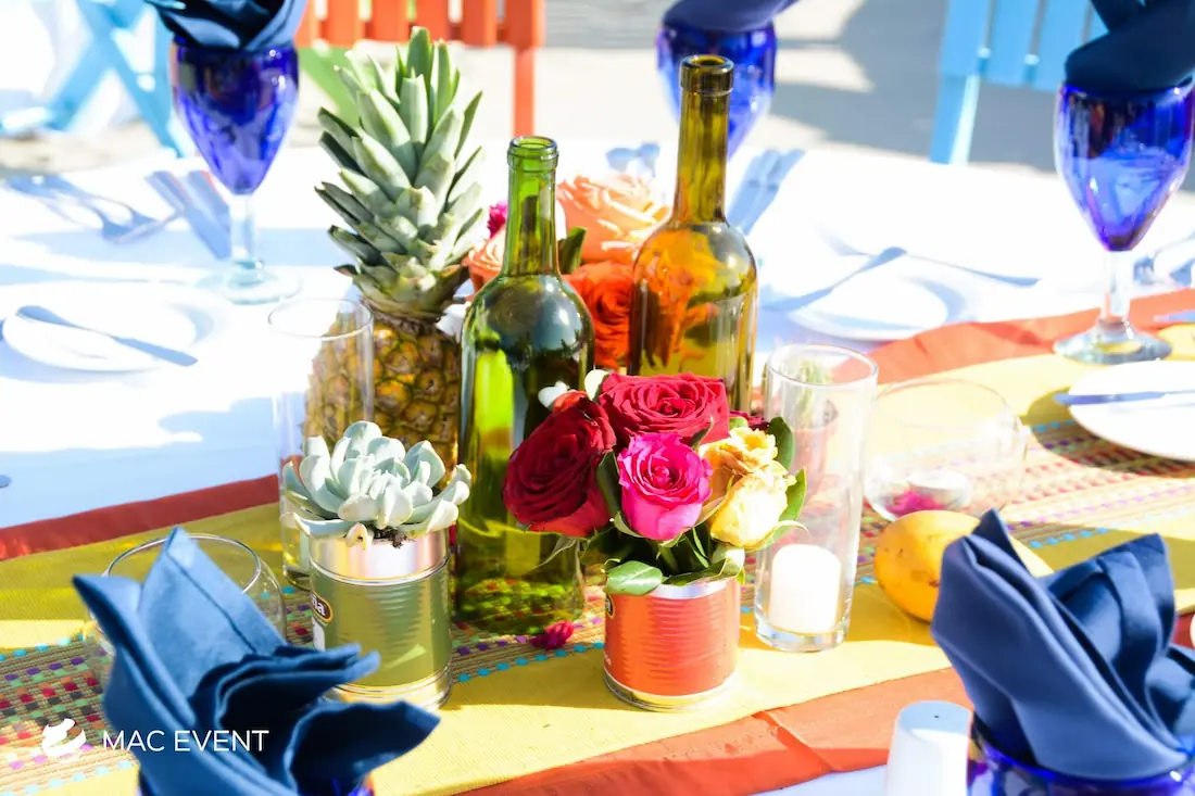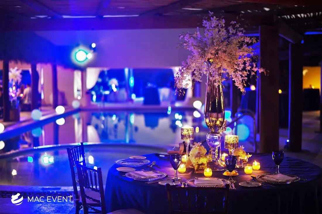 The banquet table centerpiece adds elegance and harmony to long table setups at weddings, parties, and corporate events in Puerto Escondido. Designed to complement extended dining arrangements, this event décor rental enhances the flow and visual balance of your space. Whether styled with lush greenery, candles, or floral arrangements, the banquet table centerpiece creates a warm and sophisticated atmosphere that encourages conversation and connection. Renting banquet table centerpieces in Puerto Escondido ensures a coordinated and polished presentation that perfectly matches your event theme. For a refined and inviting dining experience, this centerpiece is an ideal finishing touch.