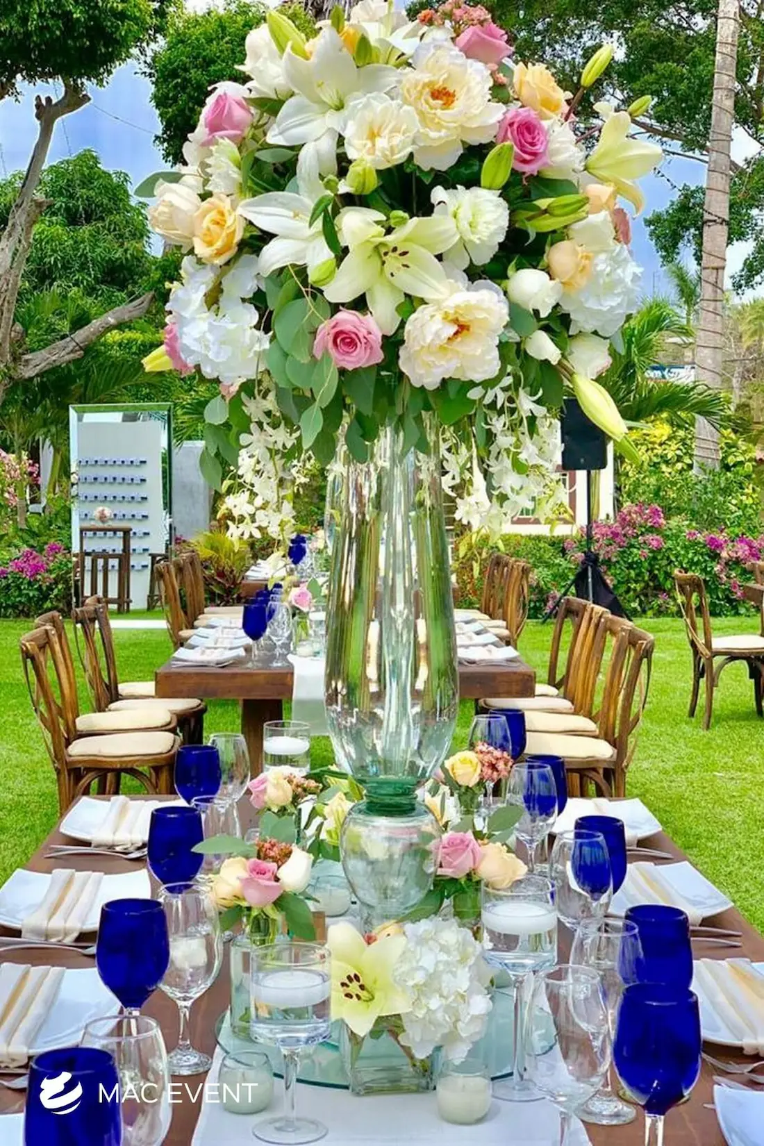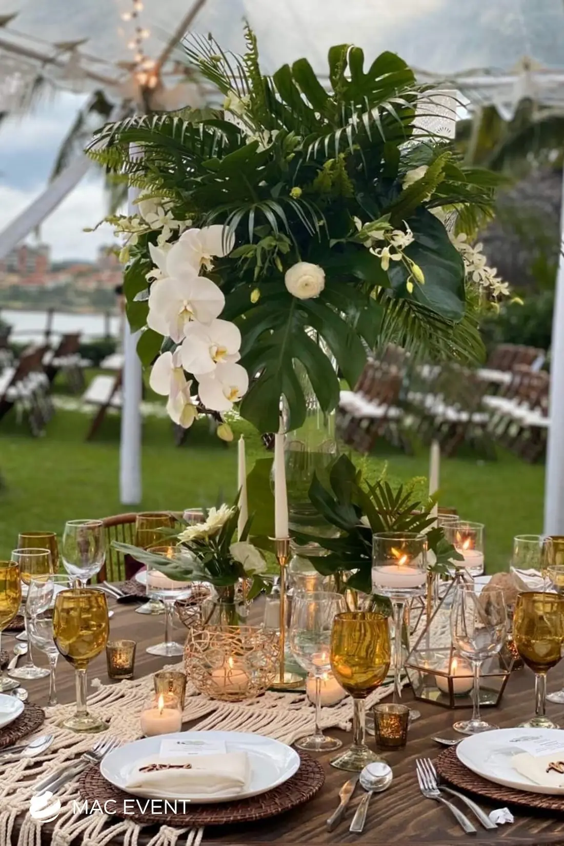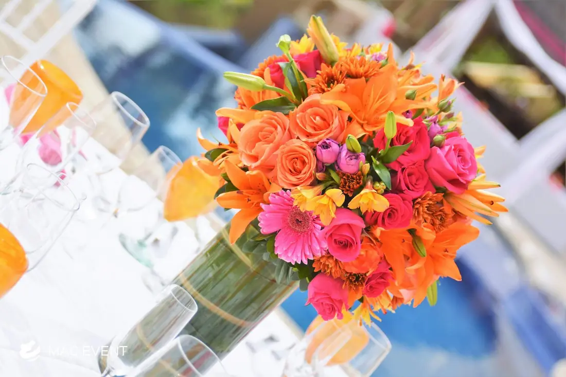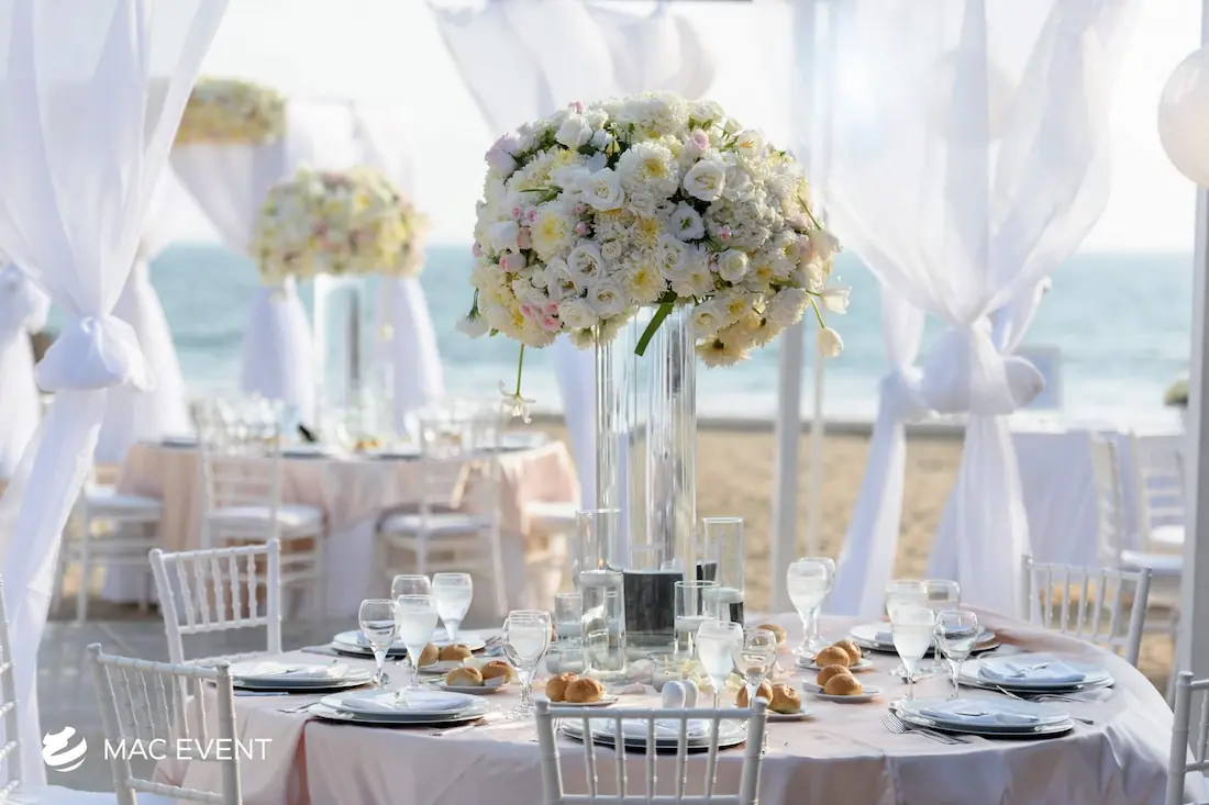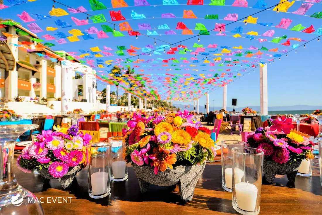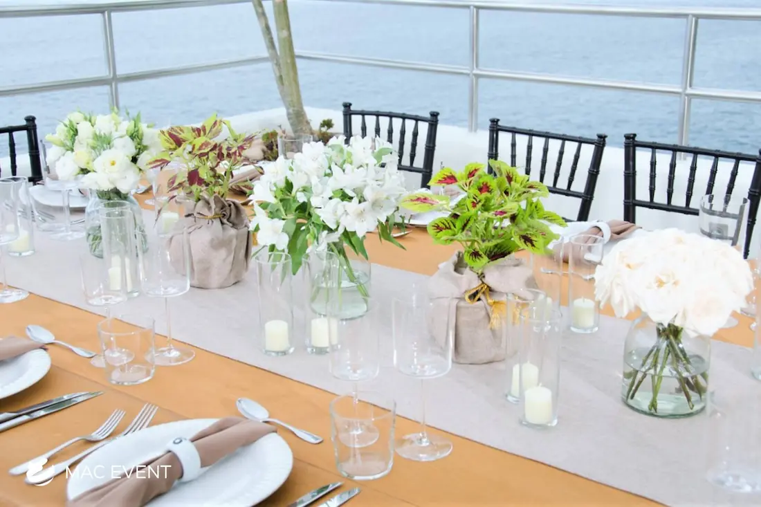 The banquet table centerpiece adds elegance and harmony to long table setups at weddings, parties, and corporate events in Puerto Escondido. Designed to complement extended dining arrangements, this event décor rental enhances the flow and visual balance of your space. Whether styled with lush greenery, candles, or floral arrangements, the banquet table centerpiece creates a warm and sophisticated atmosphere that encourages conversation and connection. Renting banquet table centerpieces in Puerto Escondido ensures a coordinated and polished presentation that perfectly matches your event theme. For a refined and inviting dining experience, this centerpiece is an ideal finishing touch.